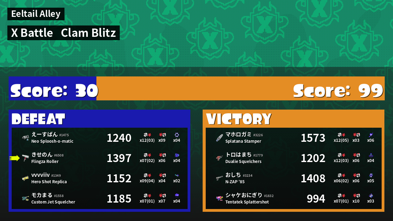 | Mode | Clam Blitz - X Battle | ||
