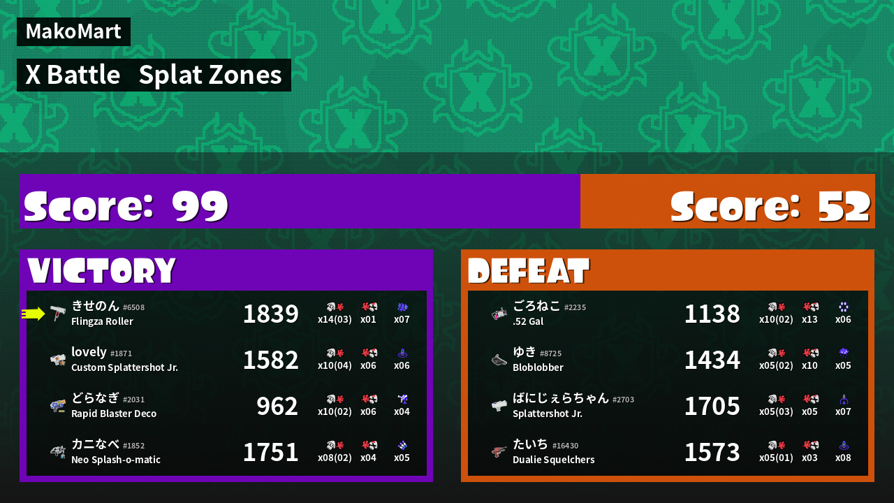 | Mode | Splat Zones - X Battle | ||