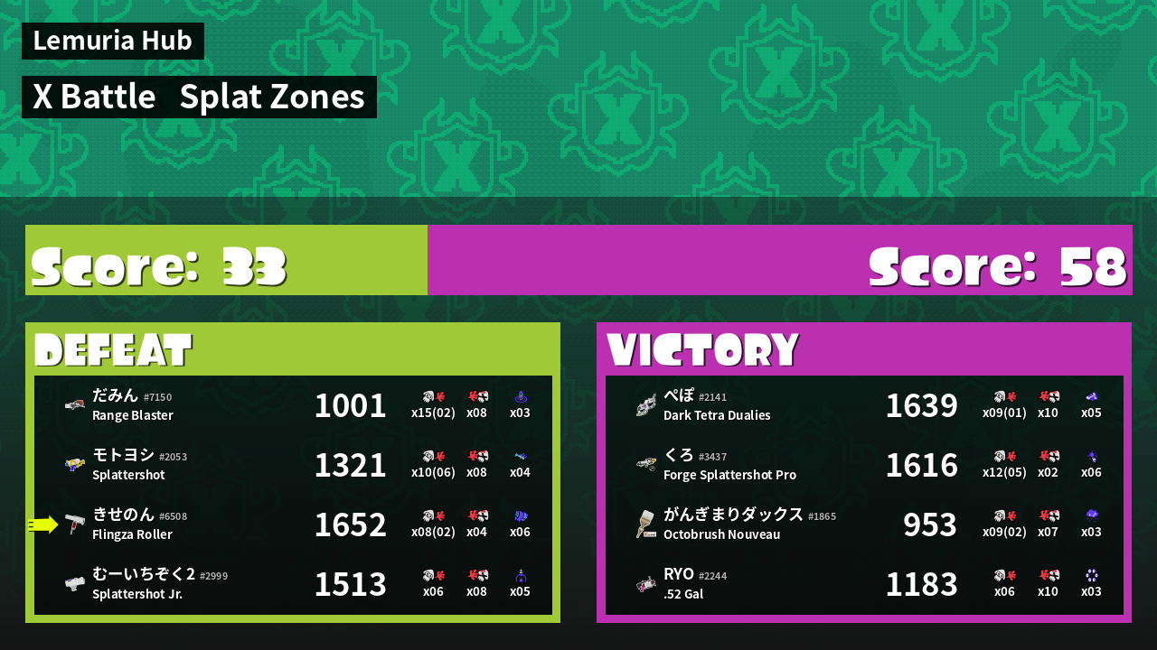 | Mode | Splat Zones - X Battle | ||