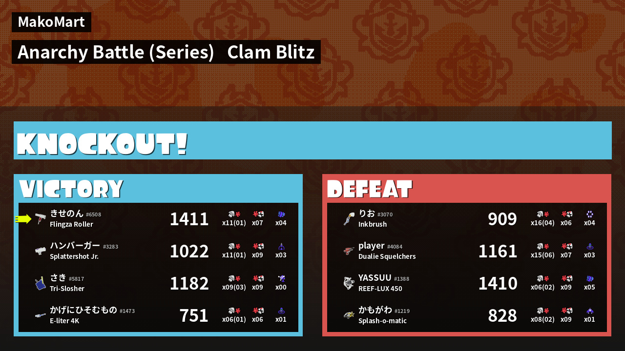 | Mode | Clam Blitz - Anarchy Battle (Series) | ||