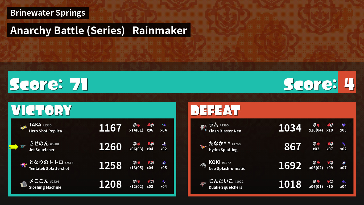 | Mode | Rainmaker - Anarchy Battle (Series) | ||