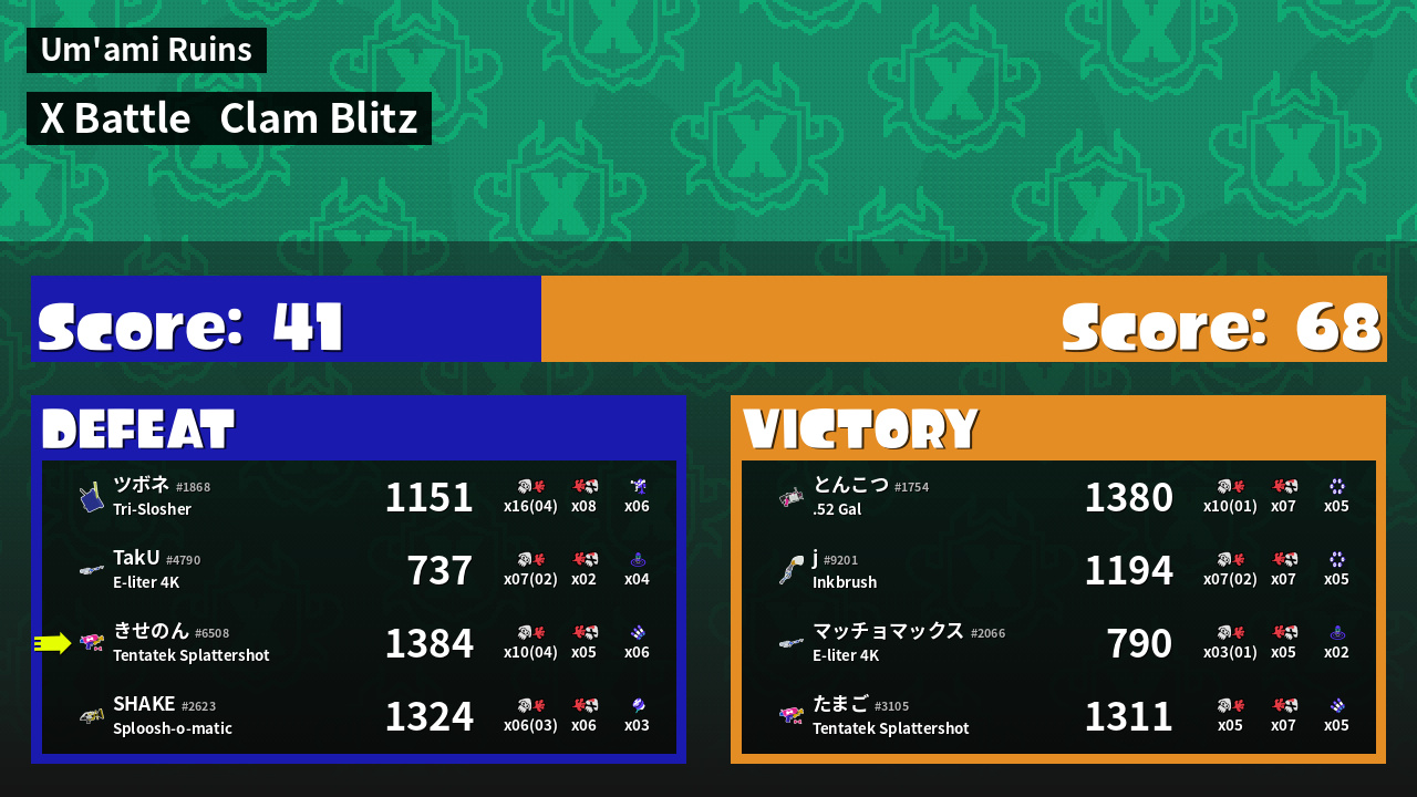 | Mode | Clam Blitz - X Battle | ||