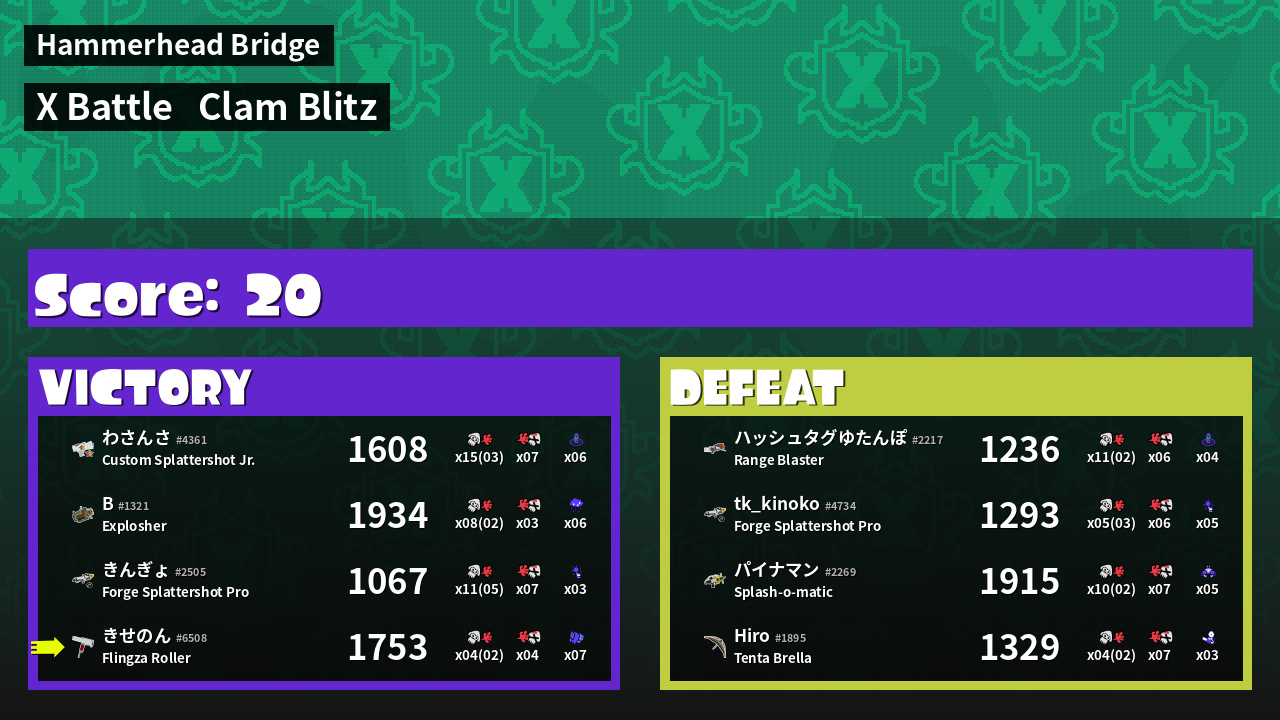 | Mode | Clam Blitz - X Battle | ||