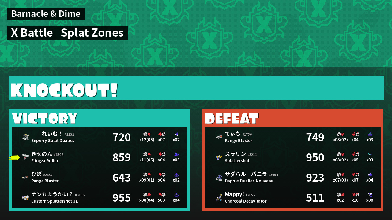 | Mode | Splat Zones - X Battle | ||