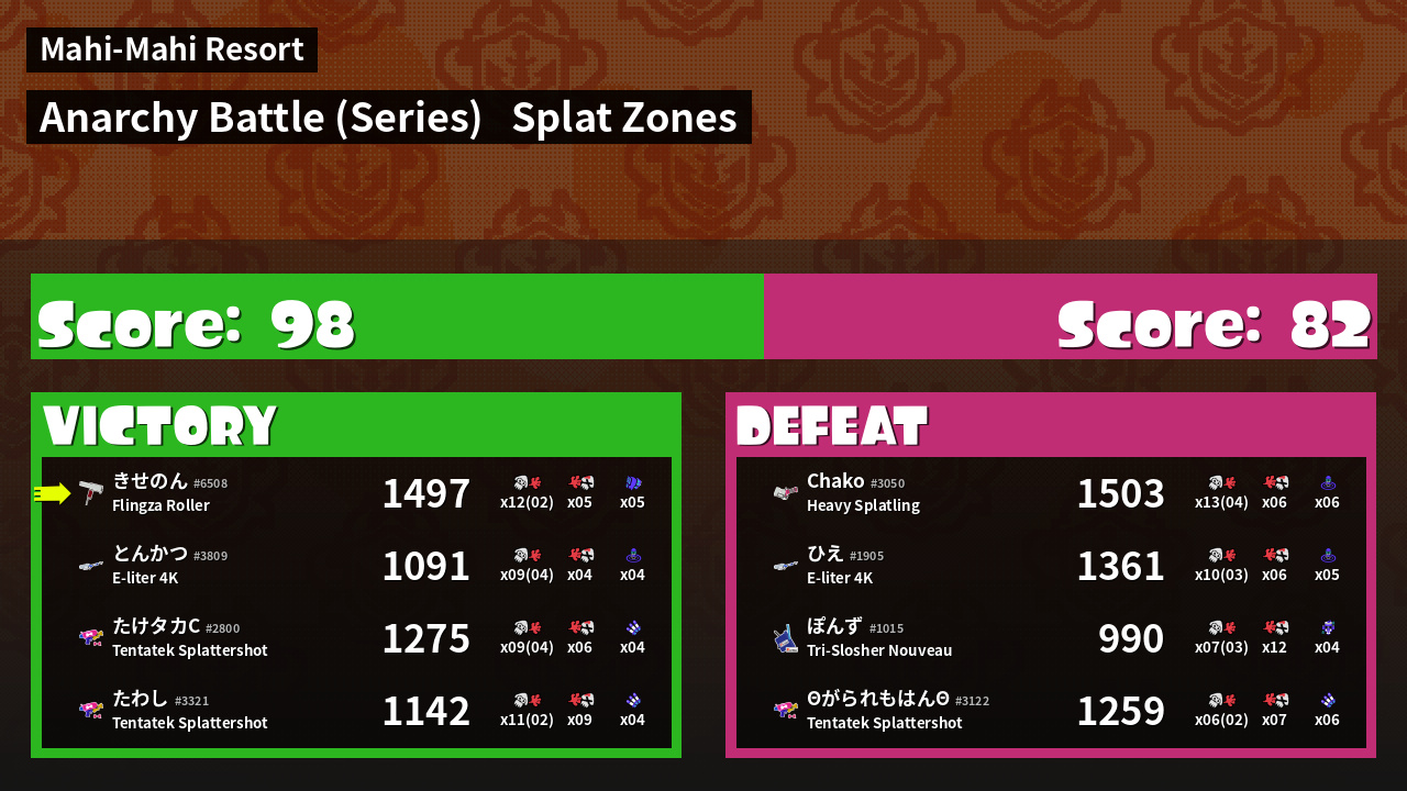 | Mode | Splat Zones - Anarchy Battle (Series) | ||