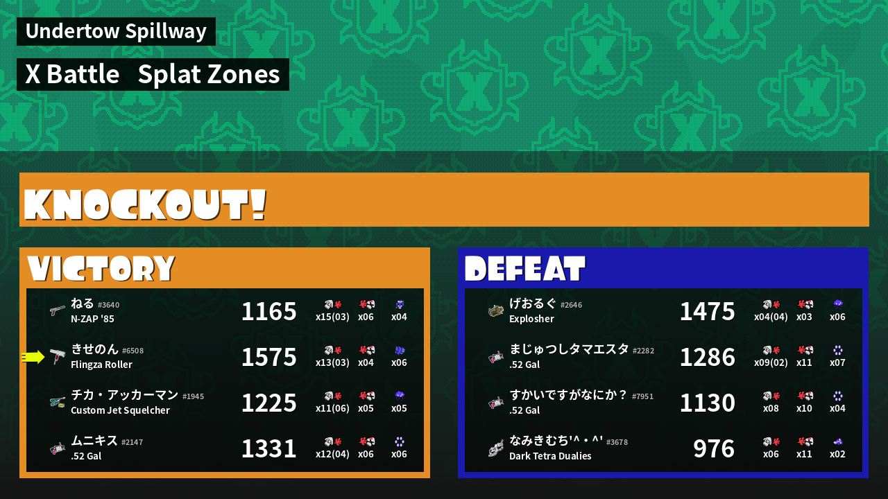 | Mode | Splat Zones - X Battle | ||