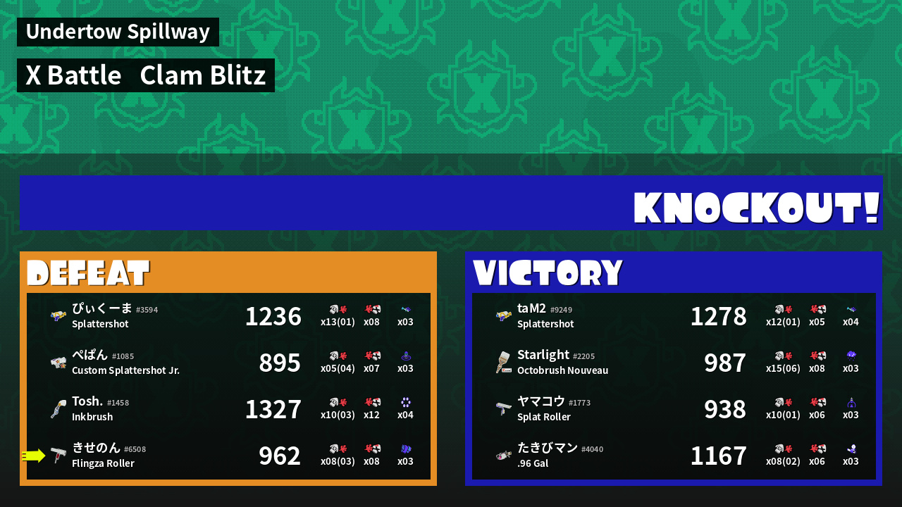 | Mode | Clam Blitz - X Battle | ||