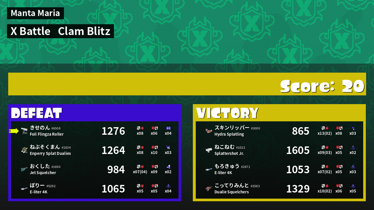 | Mode | Clam Blitz - X Battle | ||