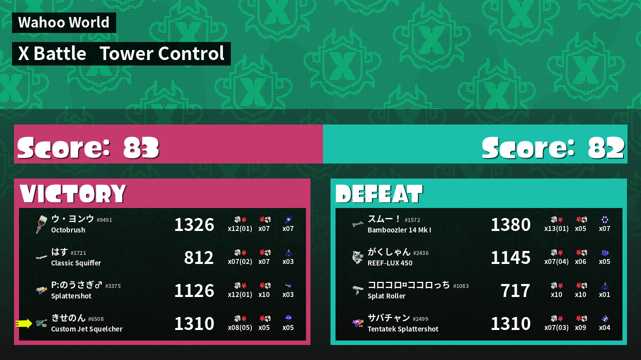 | Mode | Tower Control - X Battle | ||