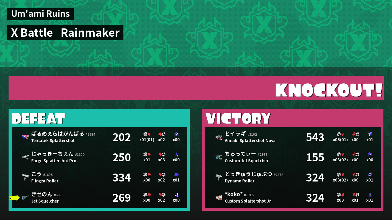 | Mode | Rainmaker - X Battle | ||