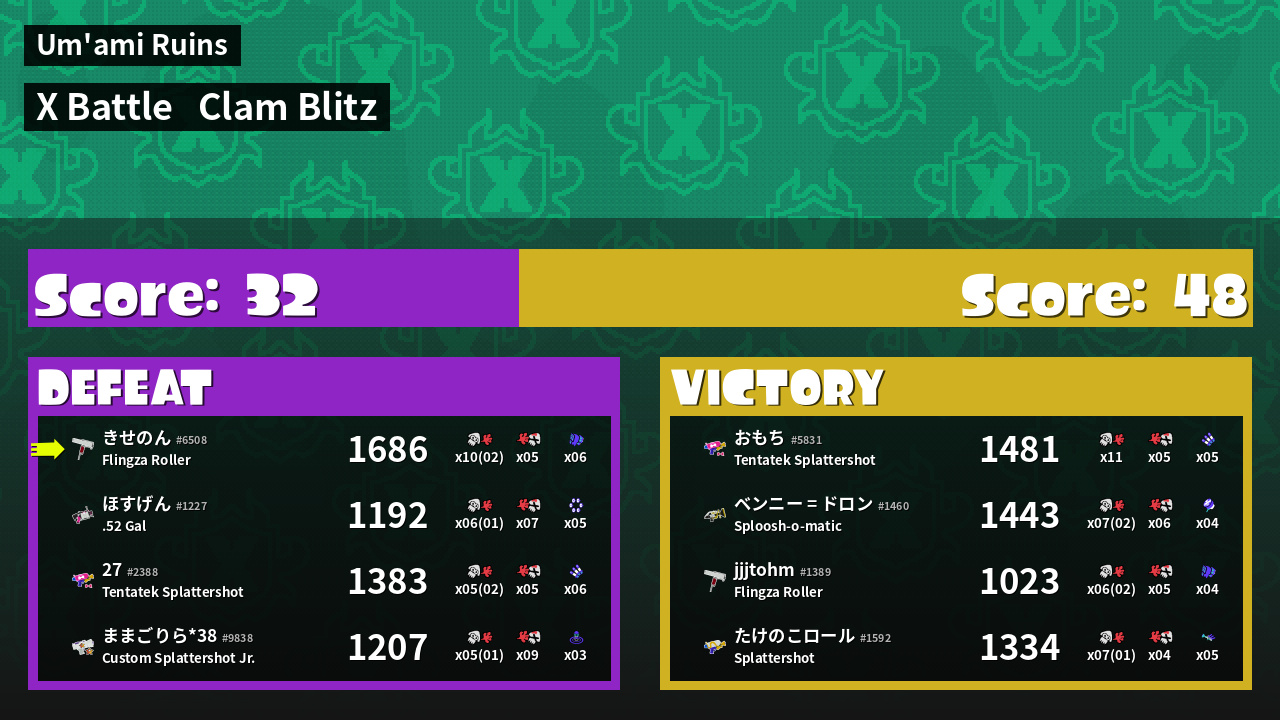 | Weapon | Flingza Roller ( Ink Mine / Tenta Missiles) | ||