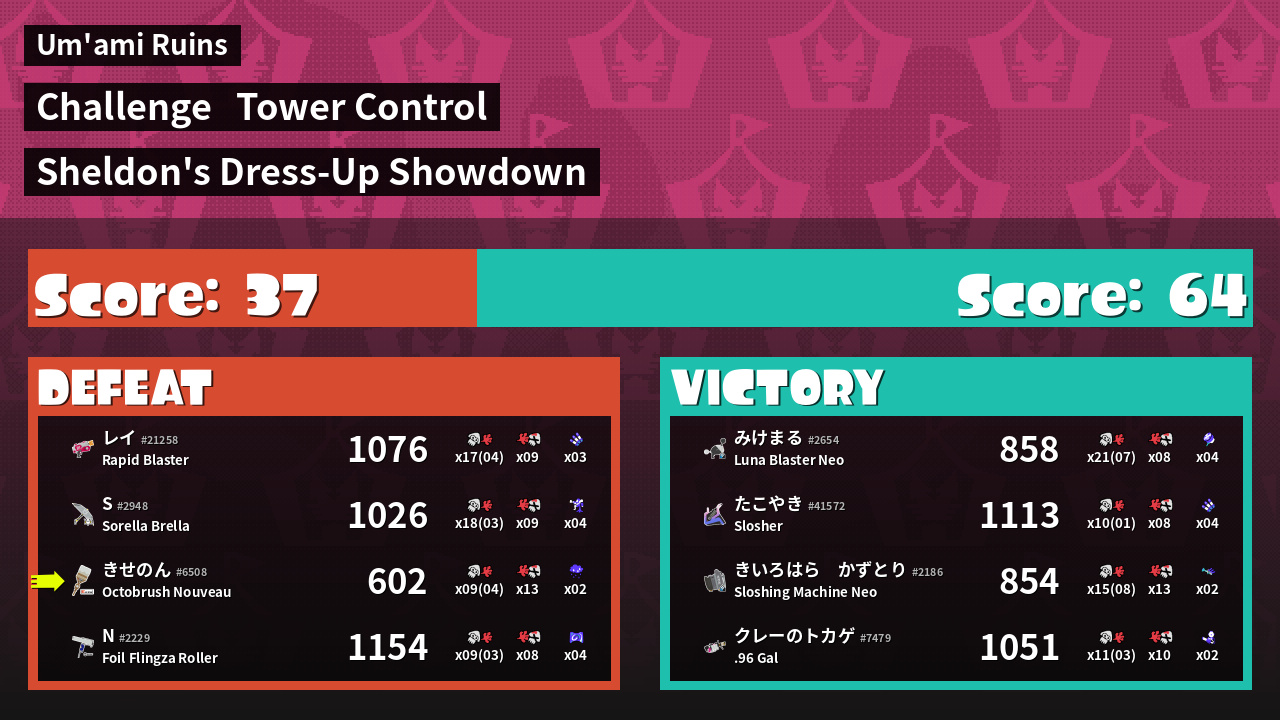| Medals | Record-Score Setter #1 Splat Assister #1 Ink Storm User | ||
