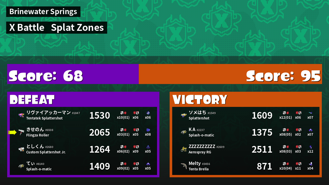| Mode | Splat Zones - X Battle | ||