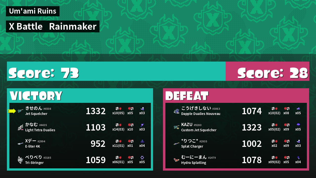 | Mode | Rainmaker - X Battle | ||