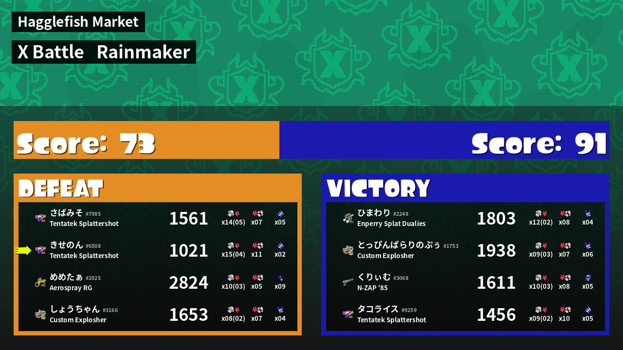 | Medals | #1 Overall Splatter #1 Enemy Splatter #1 Rainmaker Stopper | ||