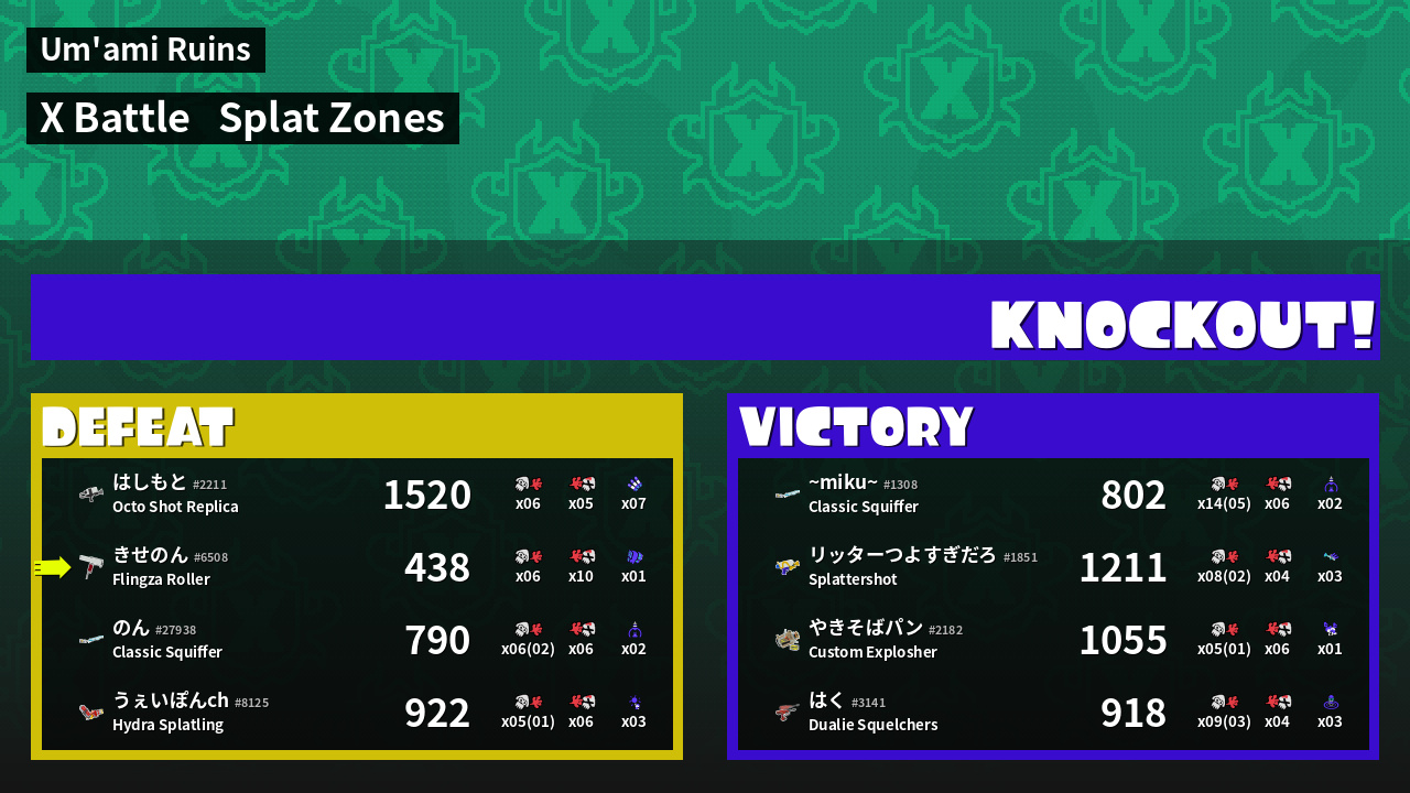 | Medals | #1 Overall Splatter #1 Splat Zone Guard #1 Enemy Splatter | ||
