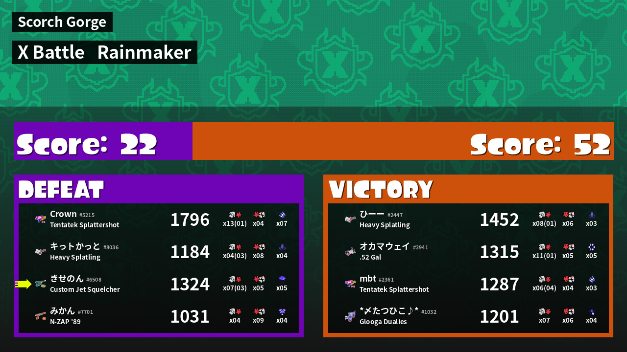| Medals | #1 Super Jump Spot #1 Splat Assister #1 Ink Storm User | ||