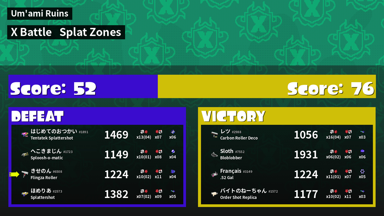 | Medals | #1 Splat Zone Guard #1 Tenta Missiles User #2 Overall Splatter | ||