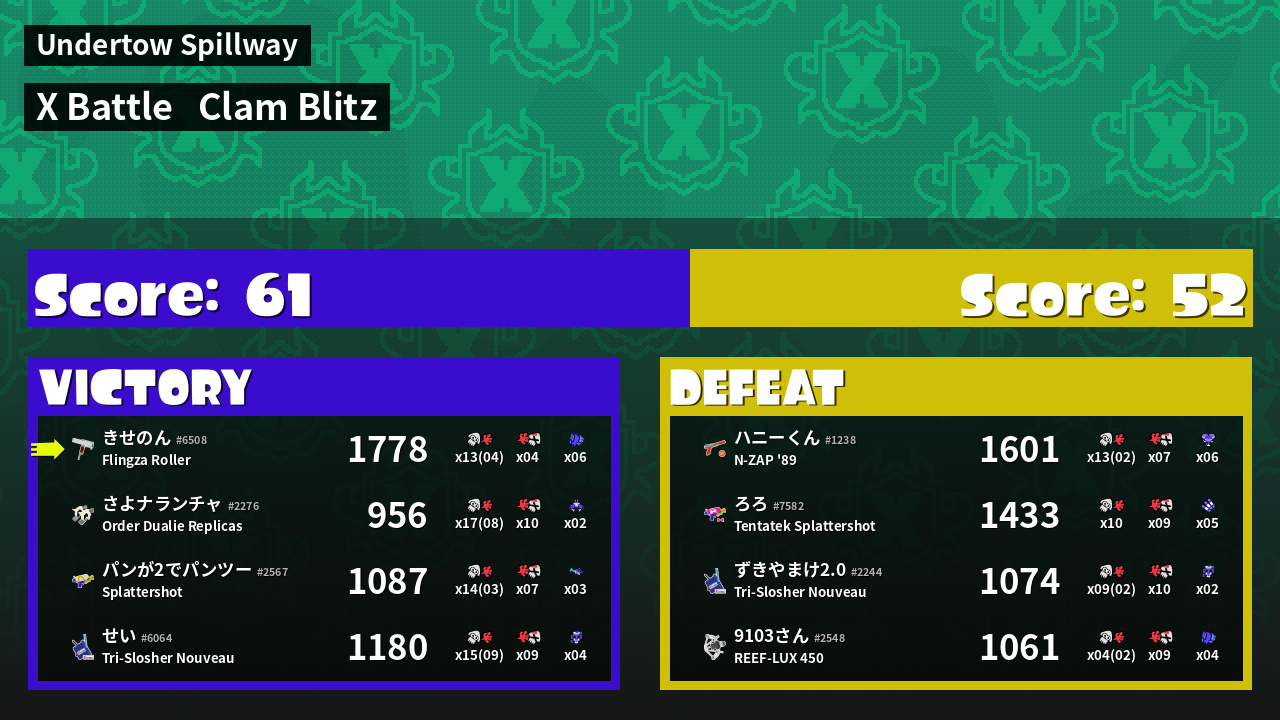 | Weapon | Flingza Roller ( Ink Mine / Tenta Missiles) | ||