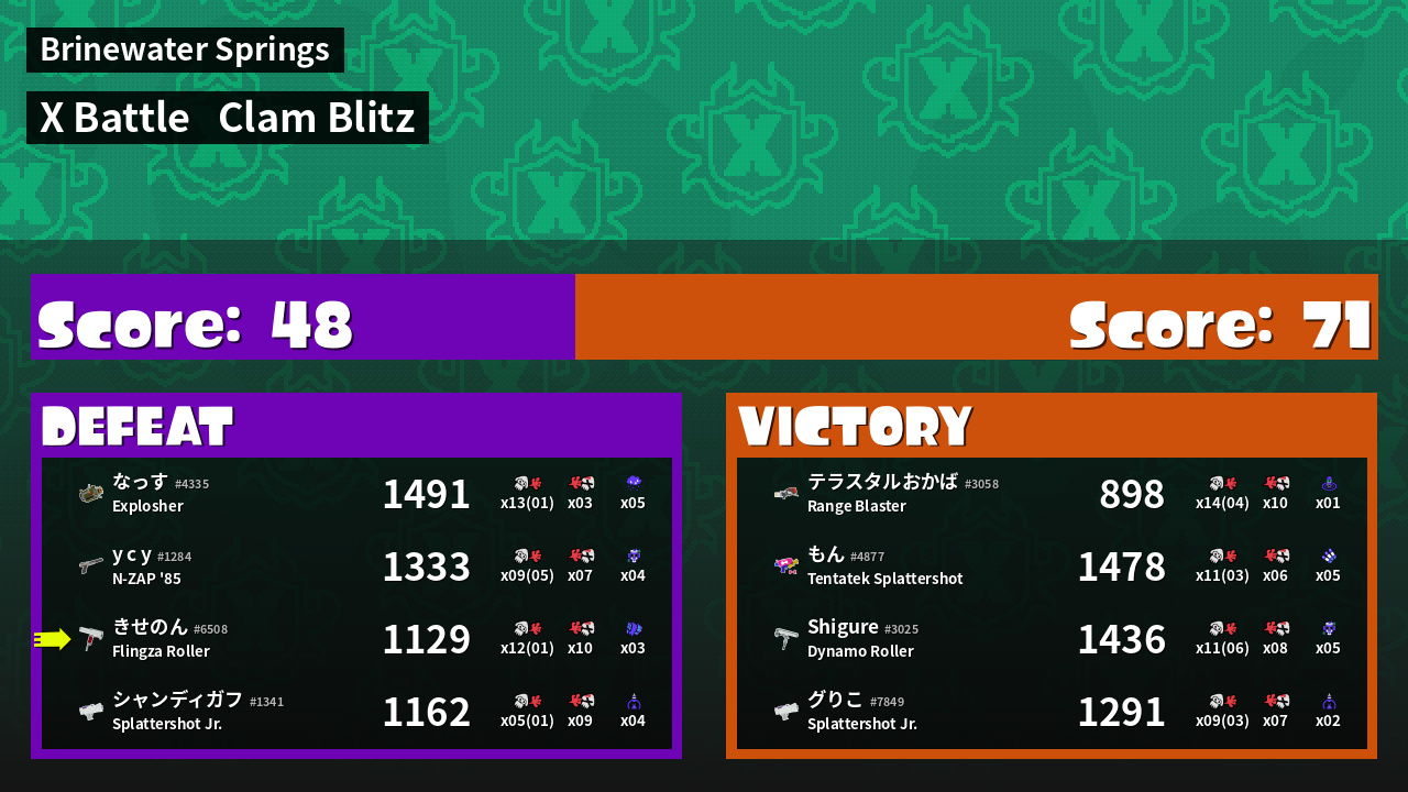 | Weapon | Flingza Roller ( Ink Mine / Tenta Missiles) | ||