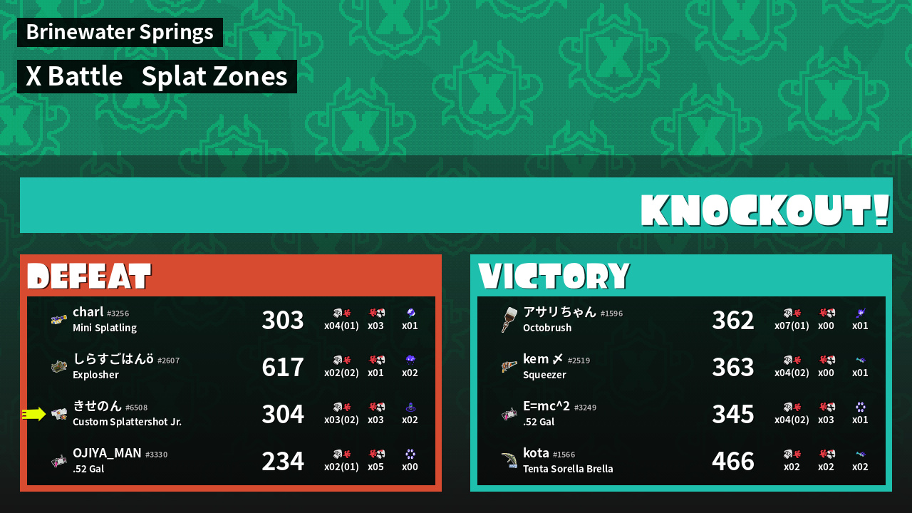 | Medals | #1 Splat Zone Guard #1 Splat Assister #1 Splat Zone Hero | ||