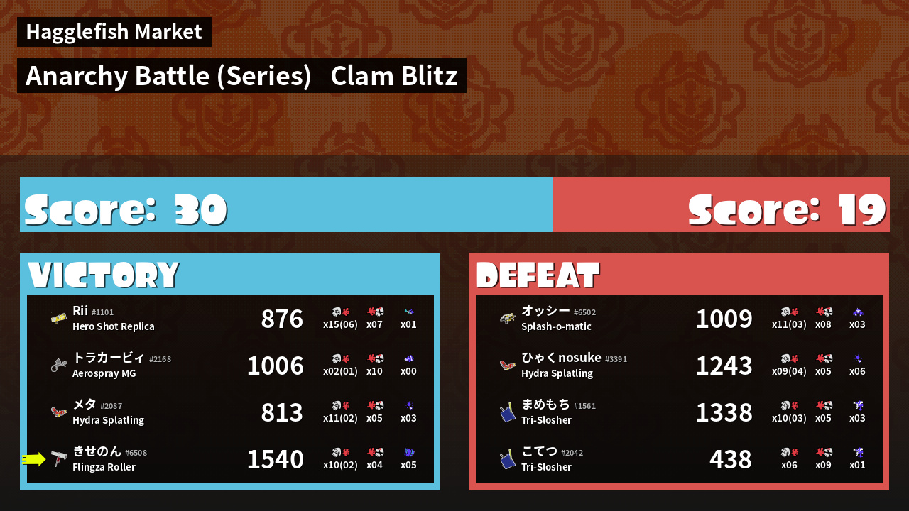 | Mode | Clam Blitz - Anarchy Battle (Series) | ||