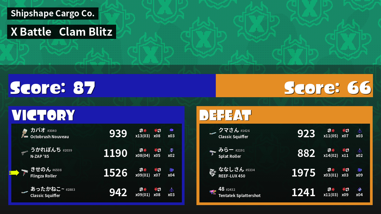 | Weapon | Flingza Roller ( Ink Mine / Tenta Missiles) | ||