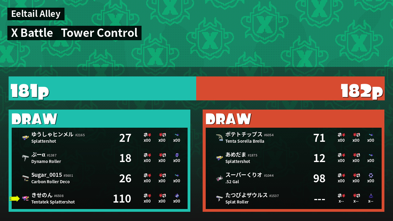 | Weapon | Tentatek Splattershot ( Splat Bomb / Triple Inkstrike) | ||