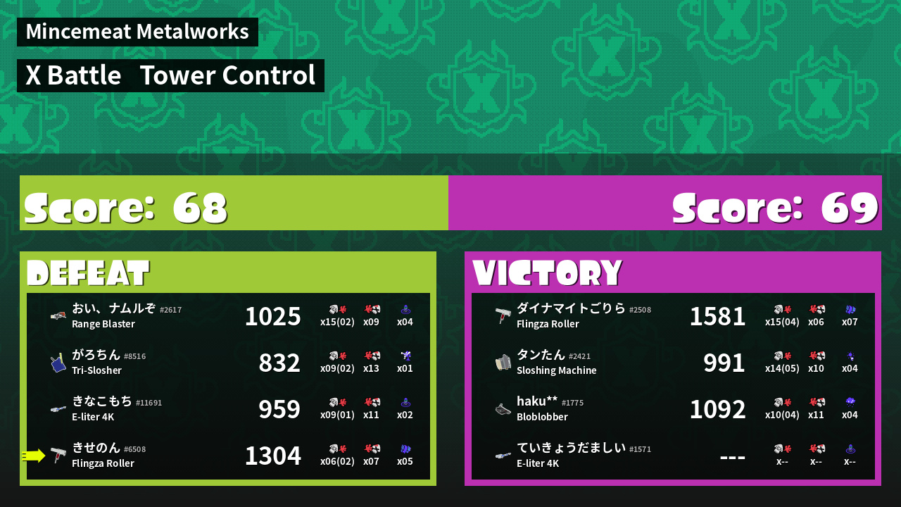 | Mode | Tower Control - X Battle | ||