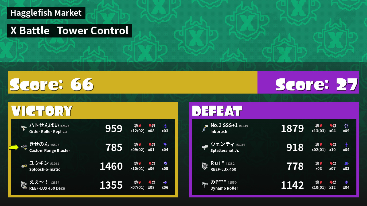 | Medals | #1 Super Jump Spot #1 Splat Assister #1 Tower Stopper | ||