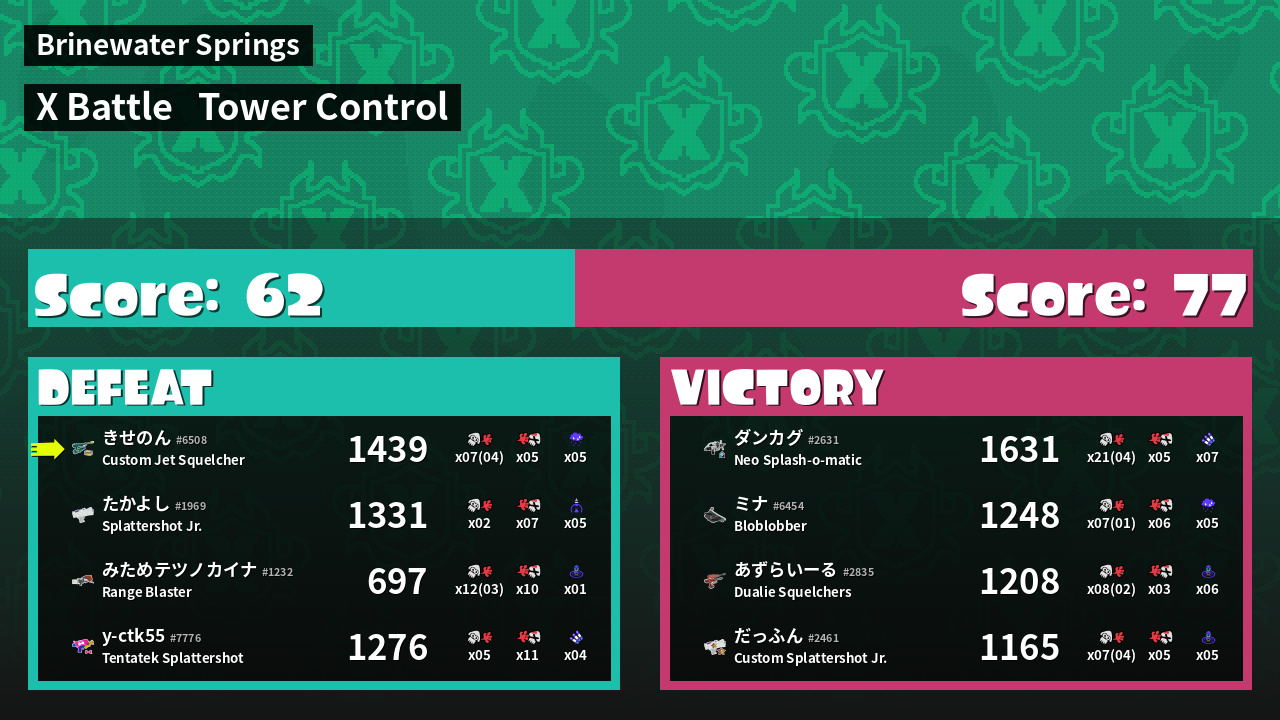 | Mode | Tower Control - X Battle | ||