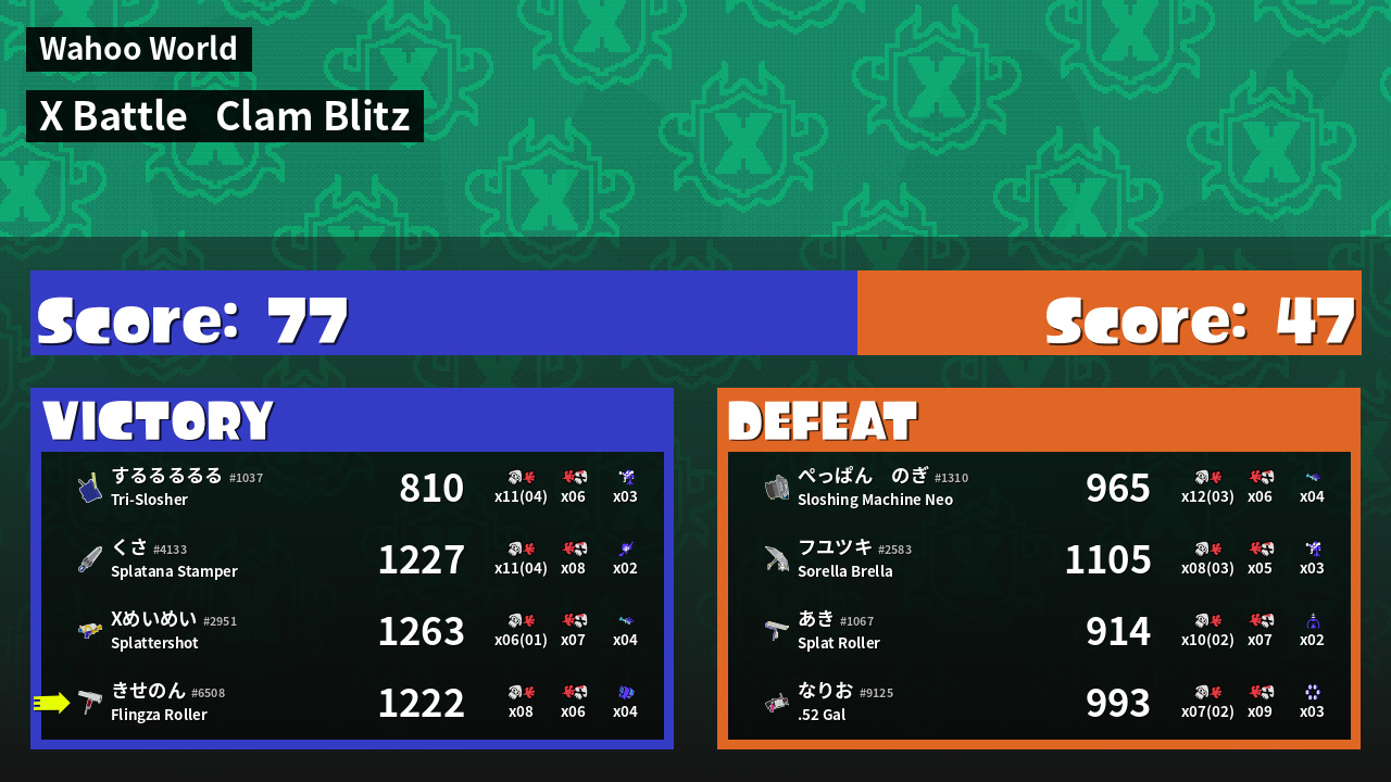 | Mode | Clam Blitz - X Battle | ||