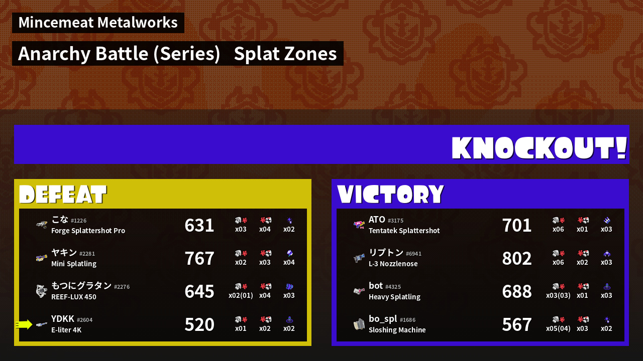 Name | Weapon | Inked | ![]() |