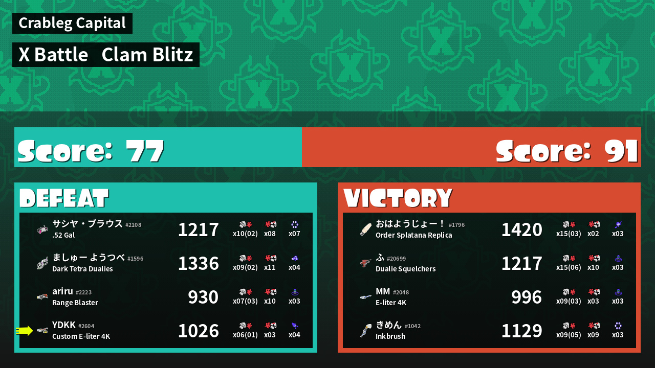 | Mode | Clam Blitz - X Battle | ||