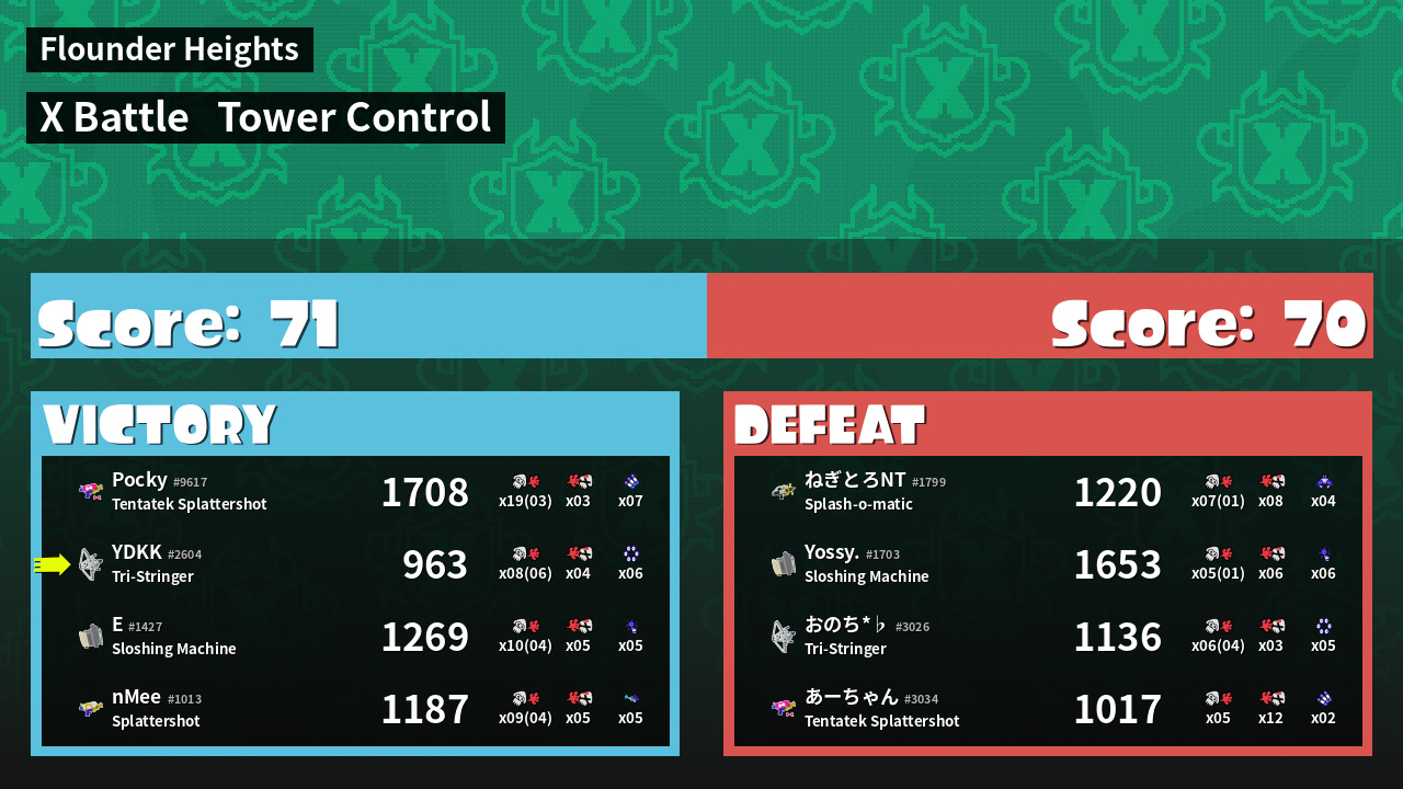 | Mode | Tower Control - X Battle | ||