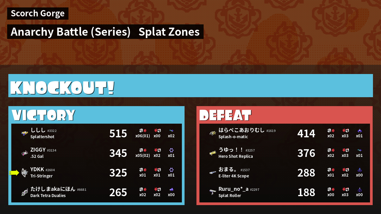 | Mode | Splat Zones - Anarchy Battle (Series) | ||