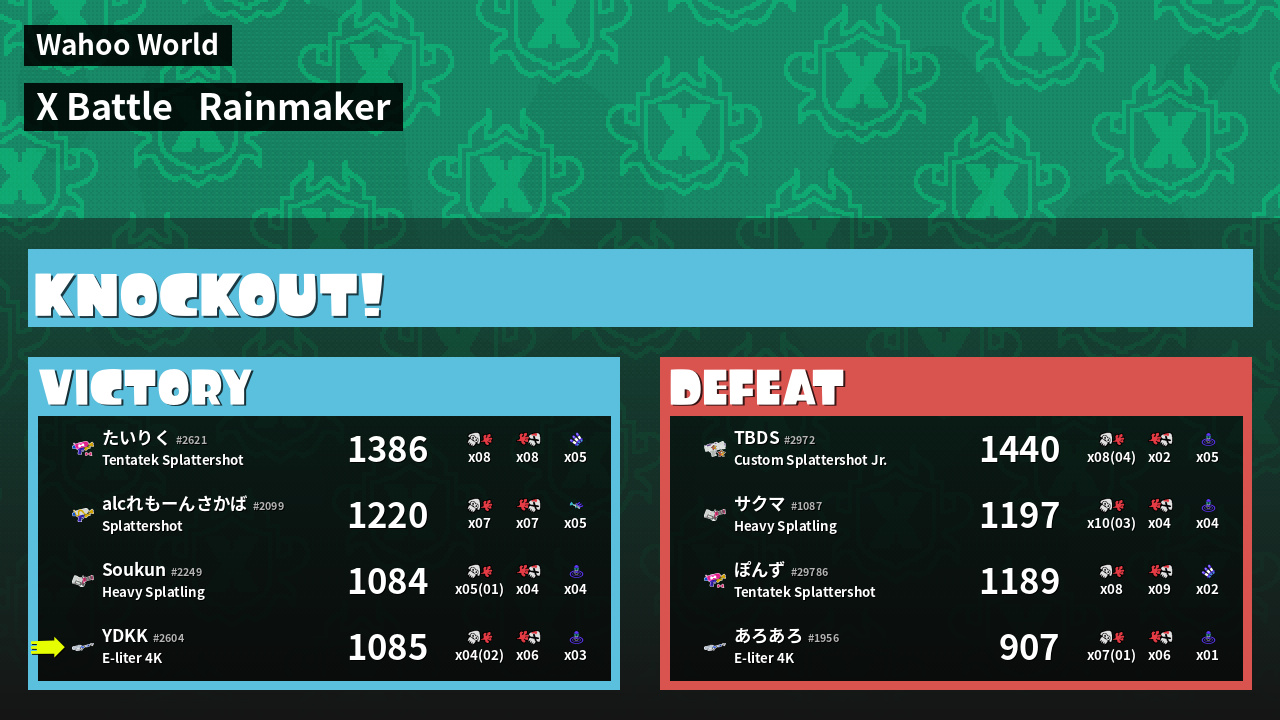 | Medals | #1 Super Jump Spot #1 Splat Assister #1 Rainmaker Carrier | ||