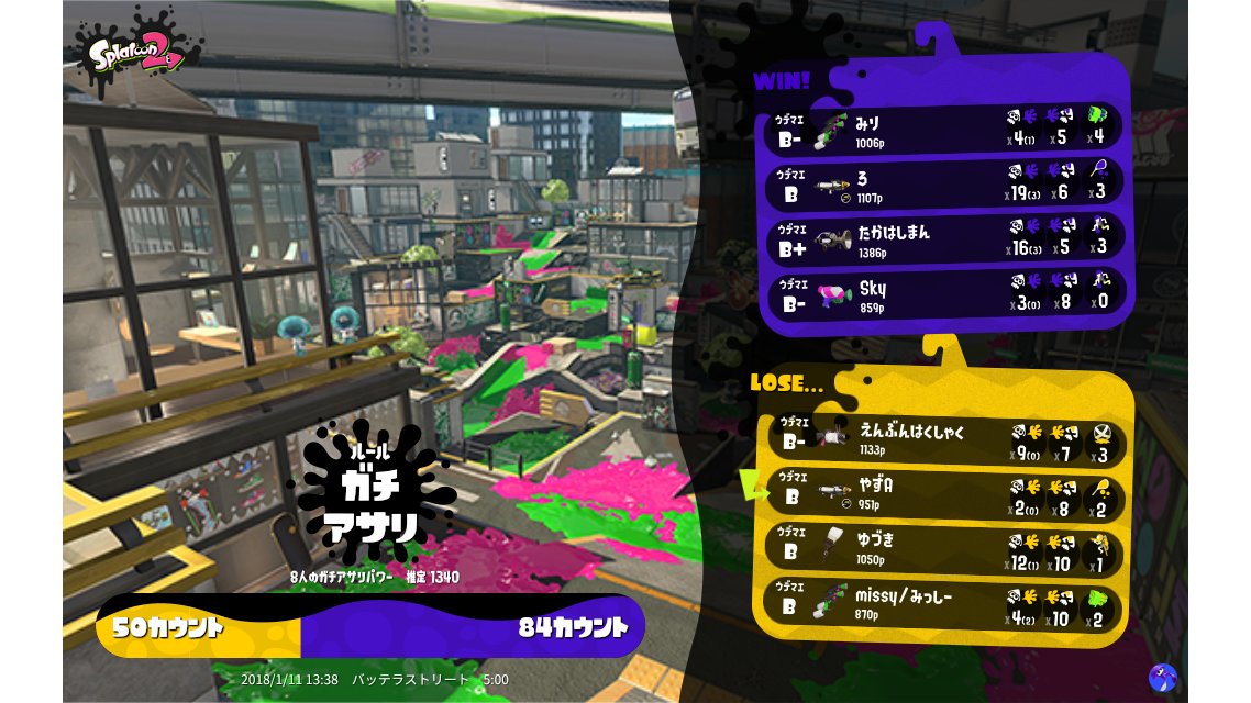 | Name | Weapon | Level | Rank | Inked | k+a/sp | k/d |