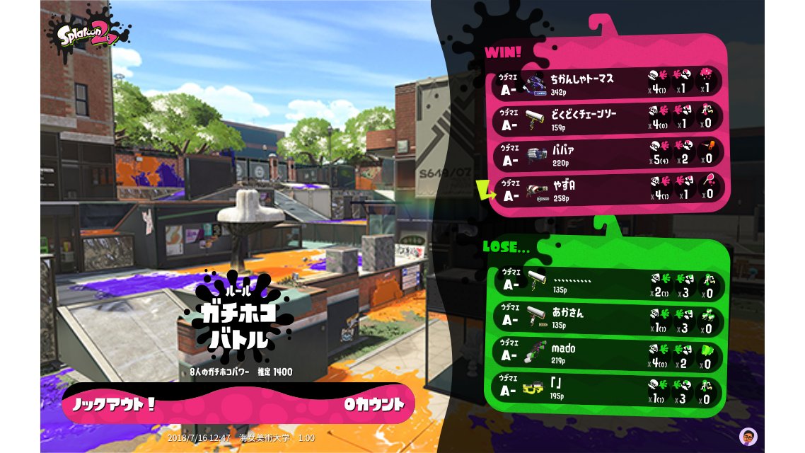 | Name | Weapon | Level | Rank | Inked | k+a/sp | k/d |