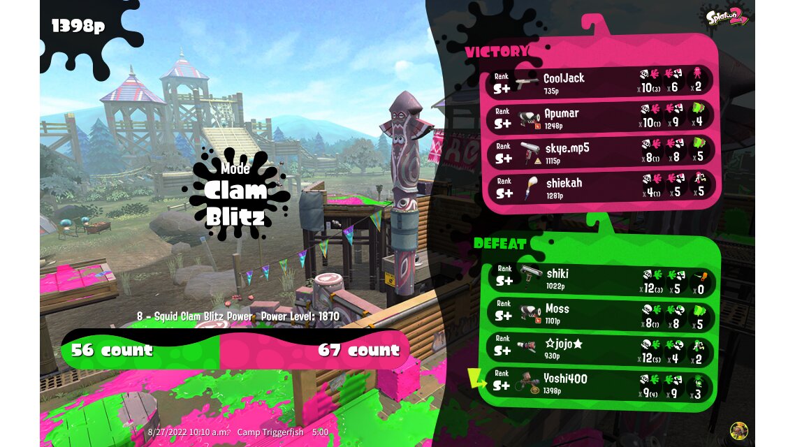 | Mode | Clam Blitz - Ranked Battle | ||||||||||||||||||||||||||||||||||