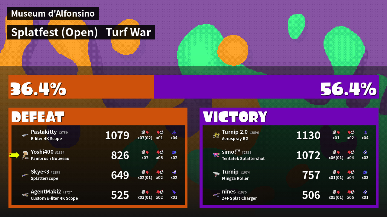 | Medals | #1 Overall Splatter #1 Enemy-Base Inker #1 Enemy Splatter | ||