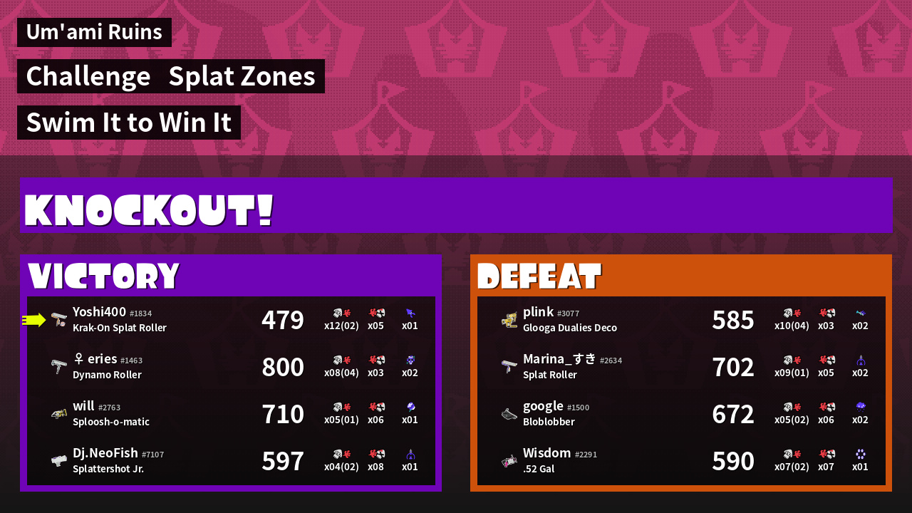 | Medals | #1 Overall Splatter #1 Splat Zone Guard #1 Popular Target | ||