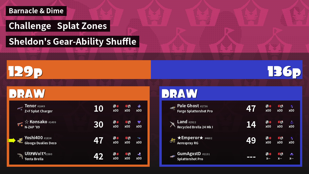 | Weapon | Glooga Dualies Deco ( Point Sensor / Trizooka) | ||