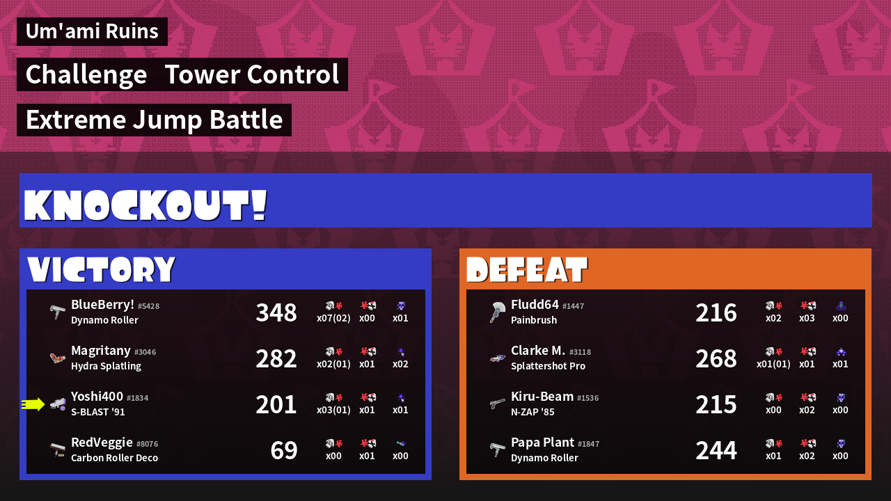 | Medals | #2 Overall Splatter #2 Enemy Splatter #2 Splat Assister | ||