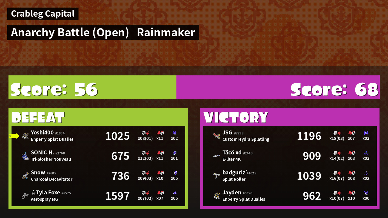 | Mode | Rainmaker - Anarchy Battle (Open) | ||