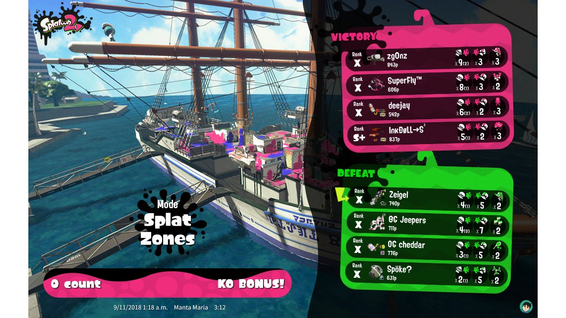 | Mode | Splat Zones - Private Battle | ||||||||||||||||||||||||||||||||||