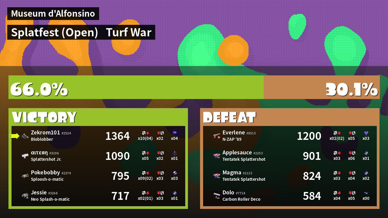 | Medals | #1 Overall Splatter #1 Turf Inker #1 Enemy-Base Inker | ||