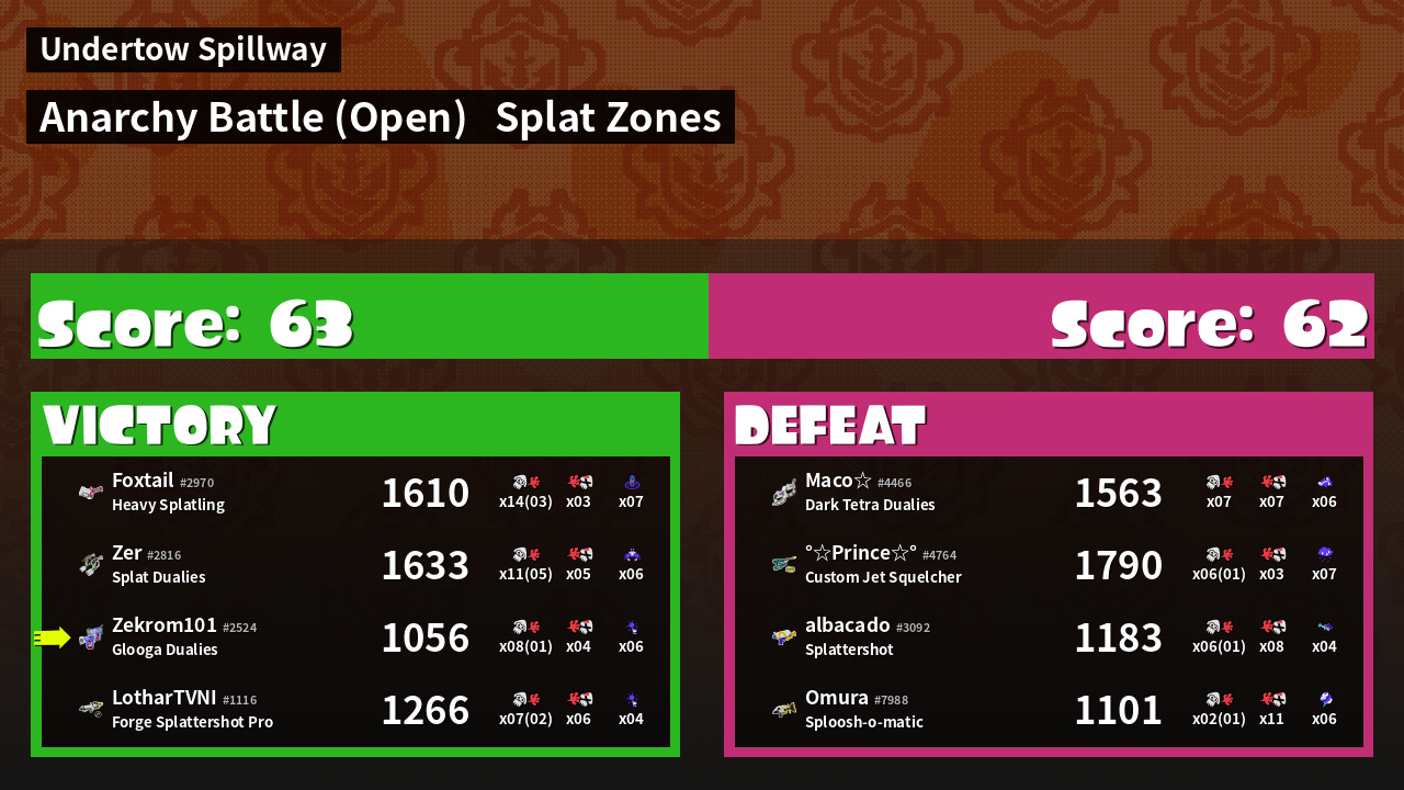 | Mode | Splat Zones - Anarchy Battle (Open) | ||