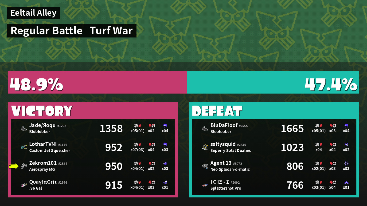 | Mode | Turf War - Regular Battle | ||
