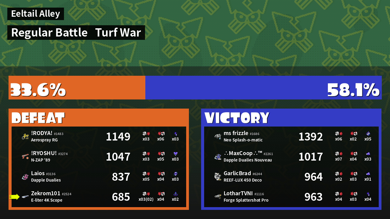 | Medals | #1 Splat Assister First Splat! #1 Wave Breaker User | ||